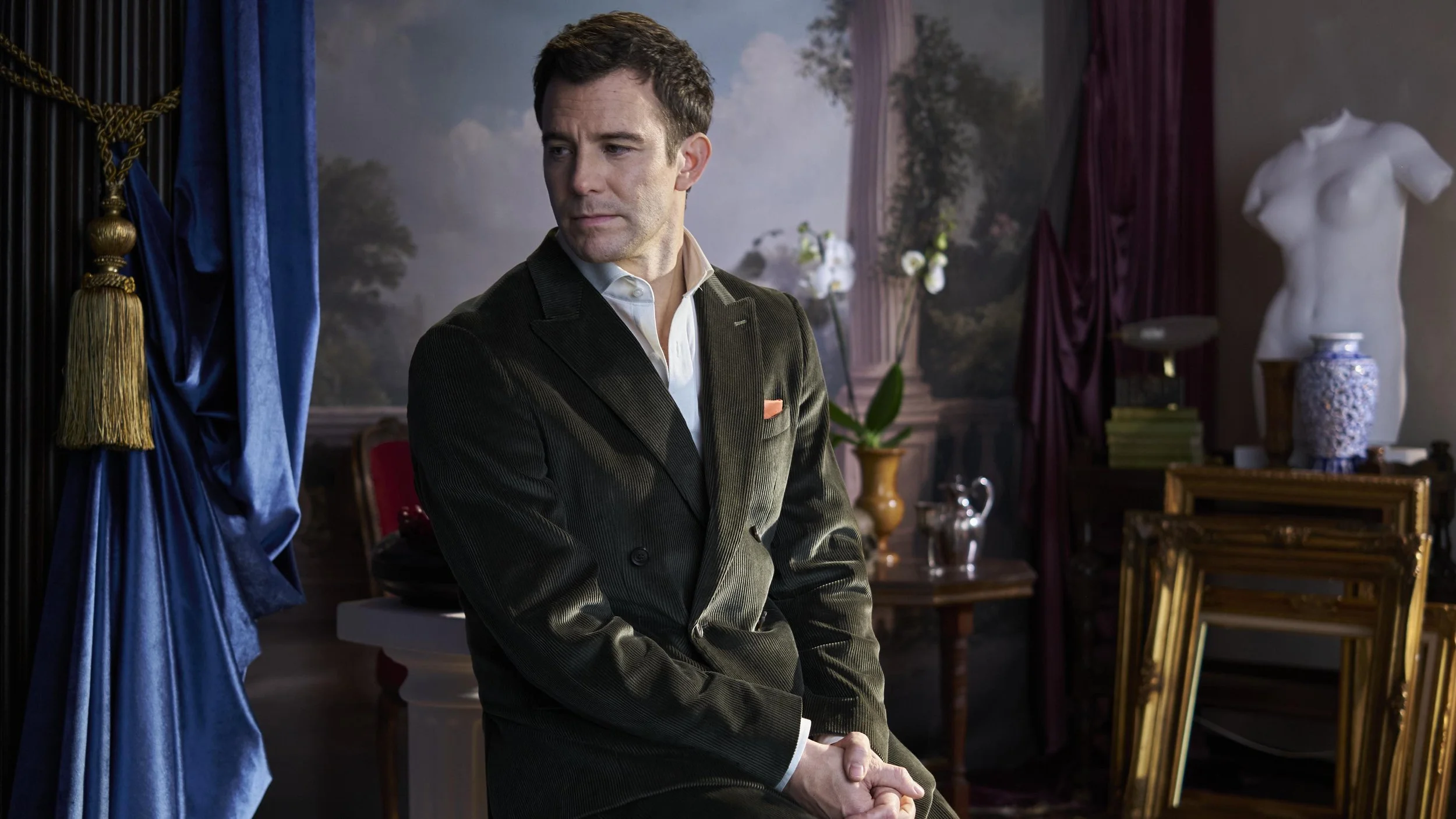 The production design progresses from opulent to a darker, oppressive space mirroring the decadence of Dorian Gray’s soul.